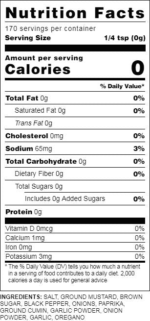 Y'all love the king of spices: Black Pepper. It only made sense to add it to our scrumptious Carolina-inspired BBQ rub. Spread it on chicken, pork or fish. Plus, couple it with your favorite Carolina Gold Sauce for a real treat. Dang!